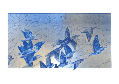 42x29,7 cm, Dessin imprimé en bichromie riso